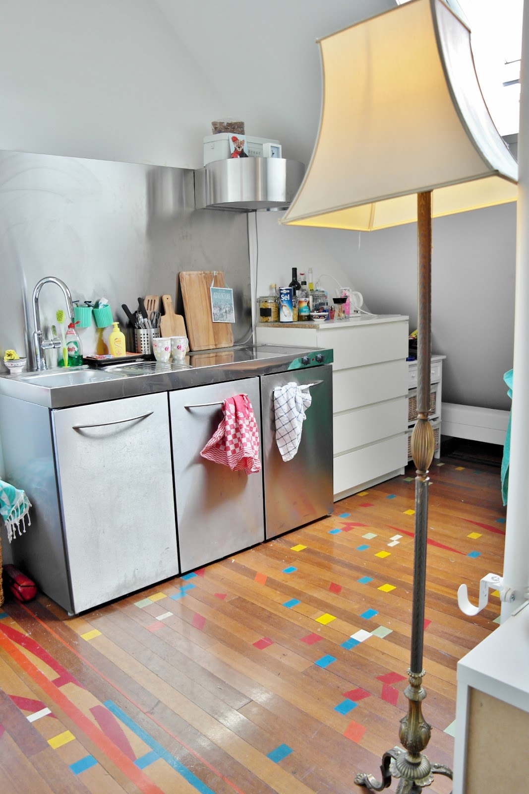Ja die vloer is gaaf hè!! Hij komt uit een oude gymzaal. Ik vond het zo'n leuk effect! Nu wil ik natuurlijk zelf ook zo'n vloer, haha :D
